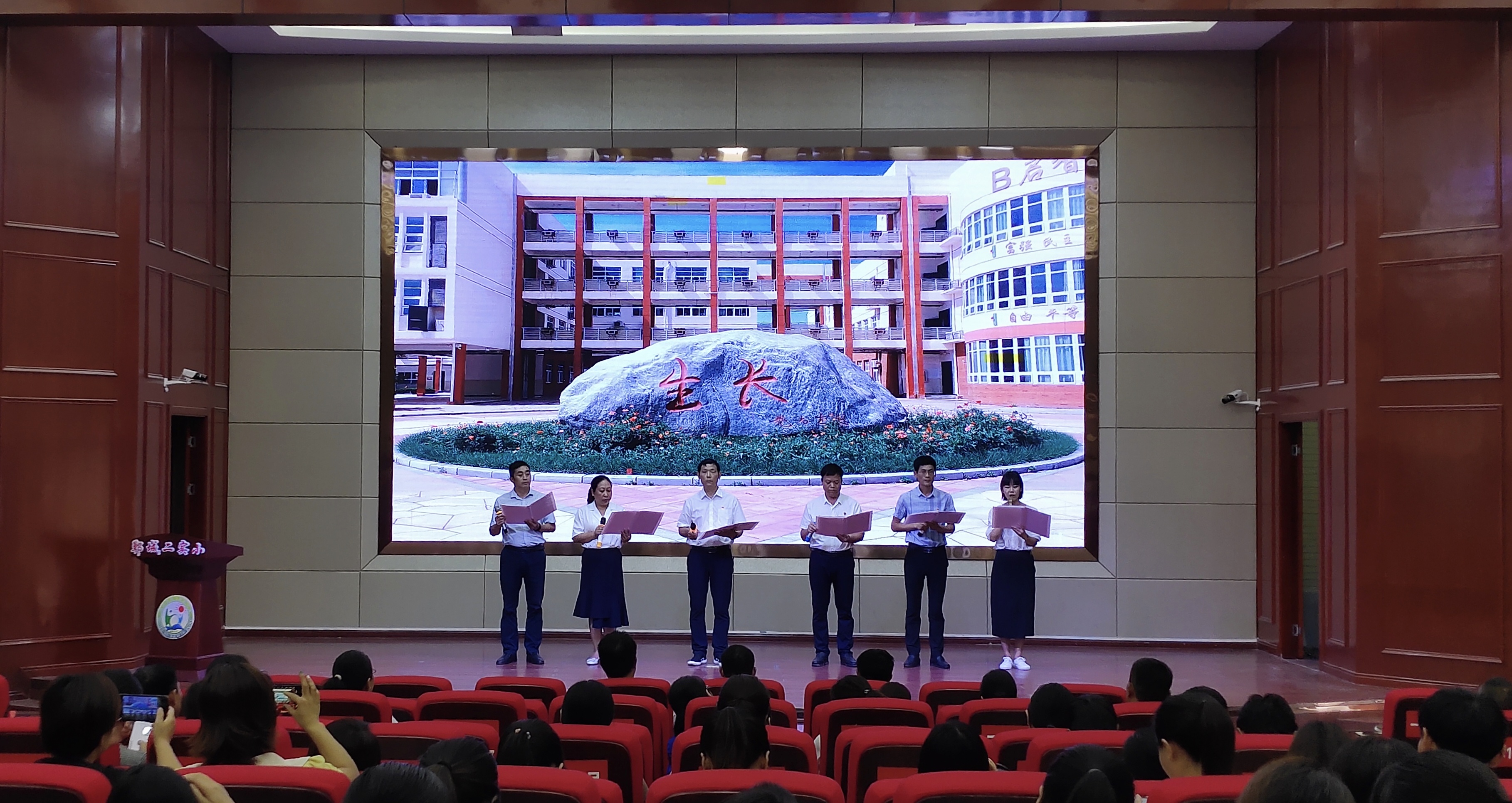 該校校長陳勇帶領校委會成員朗誦《校園和諧贊歌》拉開了本次慶祝會的帷幕。