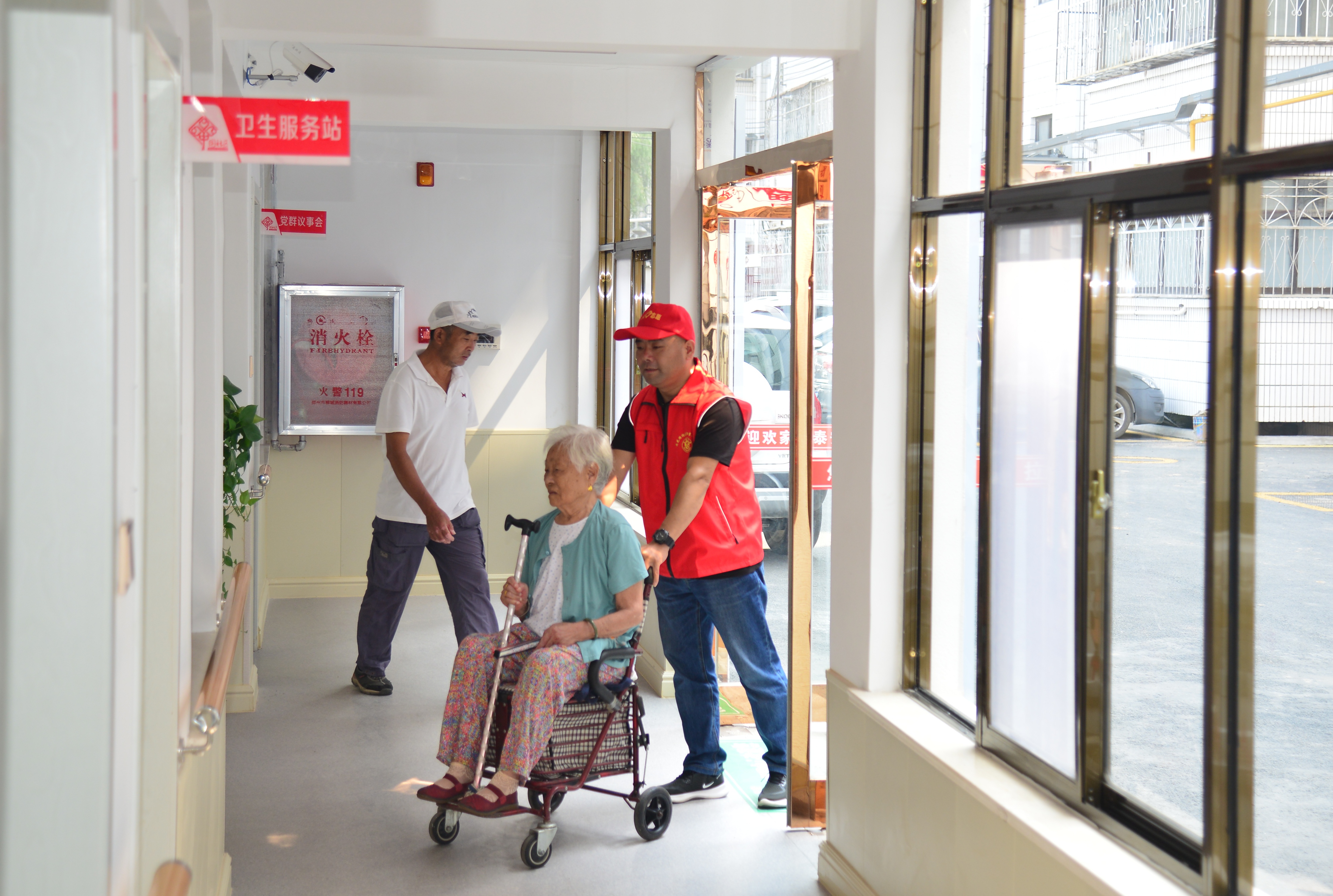 川匯區(qū)西楊莊社區(qū)志愿者接行動不方便的居民到社區(qū)服務中心參加活動
