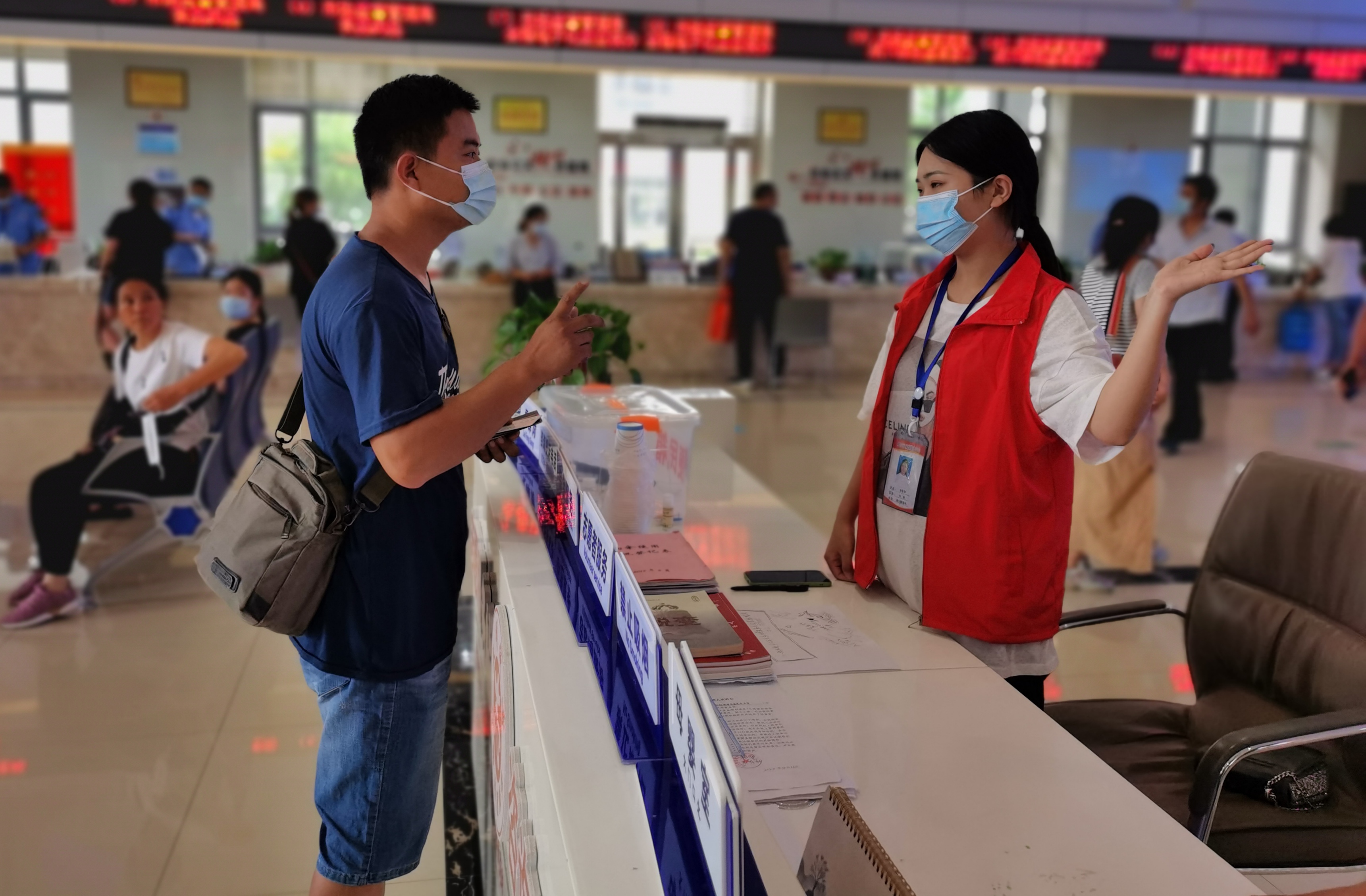 市民在向周口市行政服務中心大廳的志愿咨詢問題