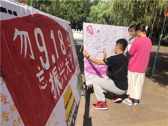 記者在河南科技職業(yè)大學(xué)看到,學(xué)校團委組織各學(xué)院團總支開展“銘記九一八勿忘國恥”主題團日活動,各級團組織通過主題教育班會、簽名儀式等活動重溫“九一八”歷史事件。河南科技職業(yè)大學(xué)團委副書記劉曉娜表示,通過回顧這段歷史,同學(xué)們深刻體悟到了中華民族曾經(jīng)經(jīng)受的苦難和今天幸福生活的來之不易,以此激發(fā)同學(xué)們的責(zé)任感和愛國熱情,進一步增強青年學(xué)子們的愛國主義意識,讓大家銘記歷史,不忘初心、牢記使命,堅定青年發(fā)奮圖強的理想信念,為實現(xiàn)中華民族偉大復(fù)興的中國夢貢獻青春力量。