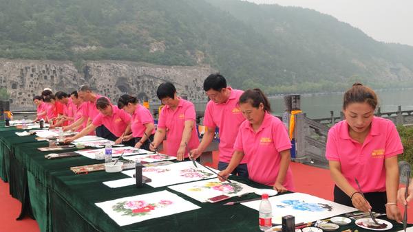 受郭泰森影響,村里不少農(nóng)民也想學(xué)習(xí)畫牡丹,在當(dāng)?shù)卣闹С趾蛶椭?,郭泰森舉辦了牡丹畫免費培訓(xùn)班、畫師培訓(xùn)班,參加培訓(xùn)的學(xué)員場場爆滿。如今,平樂鎮(zhèn)牡丹畫師已發(fā)展到1000余名,形成了包括培訓(xùn)創(chuàng)作、裱畫包裝、推介營銷、研學(xué)旅行等相對完整的產(chǎn)業(yè)鏈,帶動相關(guān)從業(yè)人員5000余人。