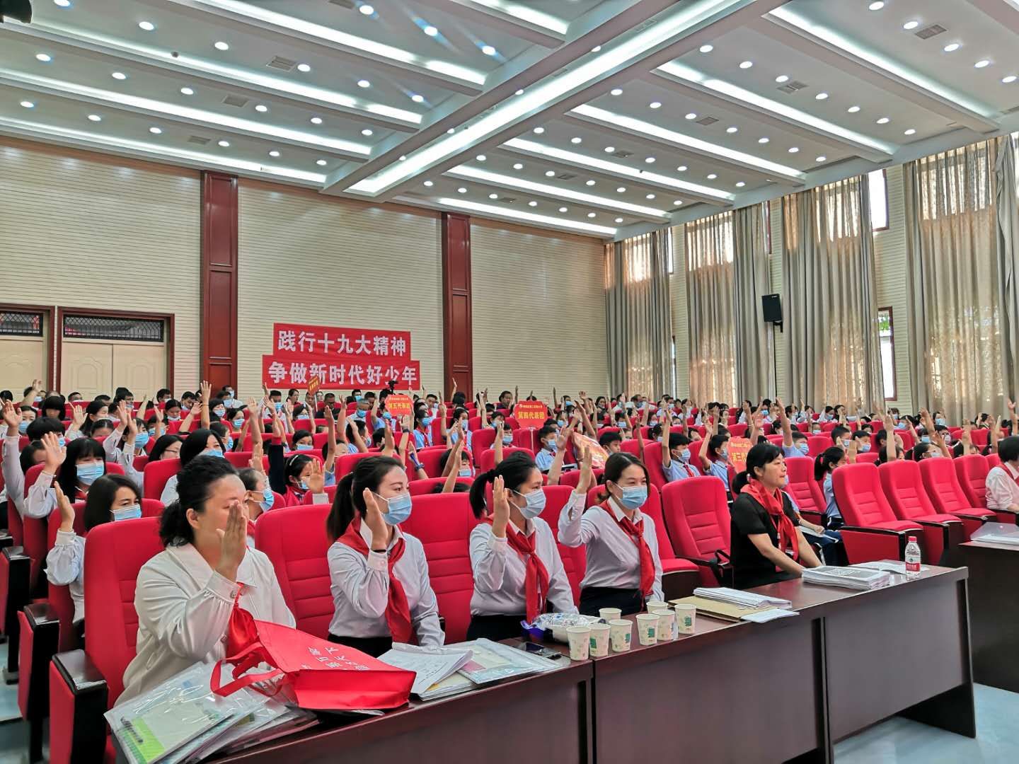 隊旗飛揚,領(lǐng)巾飄動。9月20日上午,鄲城縣第二實驗小學第一次少先隊代表大會召開。團縣委副書記黃麗莉,縣教體局主任科員張本寶、基礎(chǔ)教育股股長賈海濤、工青婦主任趙永會等到會指導。第二實驗小學領(lǐng)導班子成員及160名少先隊員代表參加會議。各鄉(xiāng)鎮(zhèn)中心校團隊專干、局屬學校少先隊輔導員等114名代表到會觀摩。大會由第二實驗小學副校長劉冰主持。