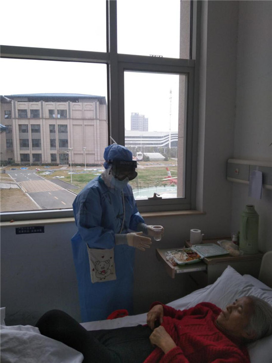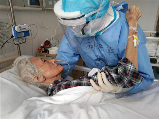 今年74歲的李秀紅,不僅感染新冠肺炎,而且罹患老年癡呆,生活需要時(shí)時(shí)照顧,而且剛?cè)朐簳r(shí),對陌生環(huán)境的恐懼造成她心情壓抑,天天不說話,時(shí)不時(shí)落淚。為了讓老人放下心理包袱,胡奔奔在進(jìn)行哄喂吃飯、服藥等正常護(hù)理之余,經(jīng)常陪老人聊天、唱歌,后來老人情緒明顯好轉(zhuǎn),還主動與胡奔奔一起扭起了舞蹈。后來,老人康復(fù)出院時(shí),雖然無言 卻一直緊緊抓著胡奔奔的手久久不愿放開。胡奔奔說,那一刻,她落淚了,但心里確實(shí)說不出的高興。