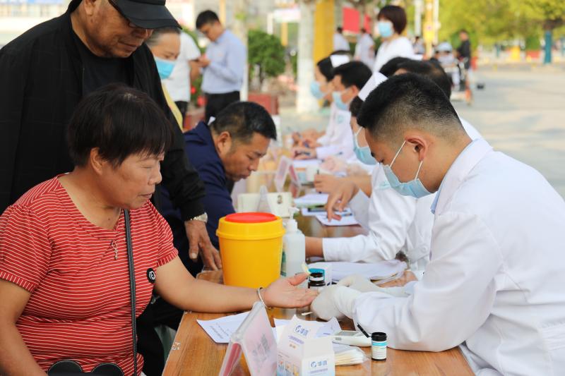 義診活動現場,通過懸掛主題宣傳橫幅、擺放健康知識宣傳展板、設置義診咨詢服務臺、發(fā)放健康促進宣傳折頁等方式為群眾進行健康知識宣教。前來咨詢就診的群眾絡繹不絕,醫(yī)務人員熱情地為群眾提供免費測量血壓、血糖等服務,耐心細致地解答群眾健康咨詢并給予診療建議,提醒平時多多加強鍛煉,注意健康飲食。