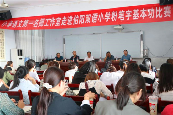 “漢字是中華民族的瑰寶,寫字教學(xué)是教師的一項基本功。此次縣硬筆書法協(xié)會應(yīng)邀來到伯陽學(xué)校,舉行書法進(jìn)校園活動。省書法家協(xié)會會員、縣書法家協(xié)會副主席李曉杰,省美術(shù)家協(xié)會會員劉龍飛作為特邀嘉賓現(xiàn)場揮毫潑墨與師生現(xiàn)場交流,將活動引向高潮?!笨h硬筆書法協(xié)會主席鮑雁冰說,結(jié)合自己多年對硬筆、毛筆習(xí)字的感悟,重點對教師進(jìn)行“如何寫好字”的培訓(xùn),使教師知道練字既能提高寫字技能,又可修身養(yǎng)性,從而引發(fā)了教師練習(xí)書法的興趣。(③2)