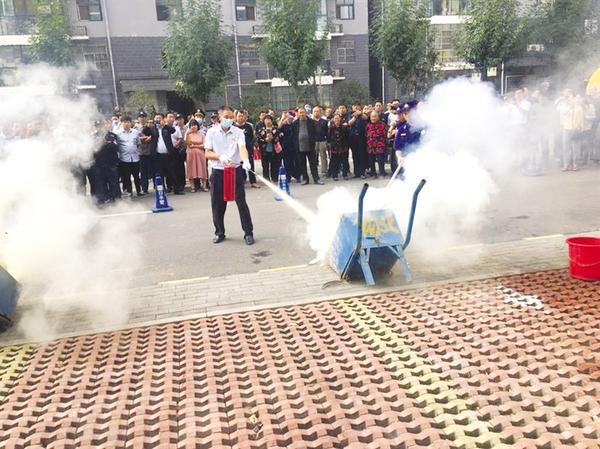 9月28日,一場(chǎng)熱鬧有序的消防安全演練在開(kāi)發(fā)區(qū)太昊路辦事處許寨社區(qū)舉行。消防救援隊(duì)員、公安民警、辦事處職工、社區(qū)居民、物業(yè)服務(wù)人員等500多人現(xiàn)場(chǎng)參觀、參與消防演練。圖為消防演練現(xiàn)場(chǎng)。記者 王泉林 攝 ③2