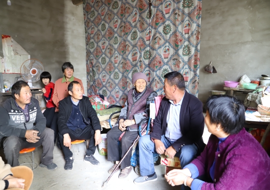 (圖為鄭德民和村干部一起為92歲特困供養(yǎng)老人孫友芝建設(shè)的兩間房屋)