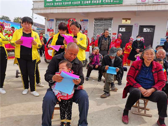 “俺家住在老冢鎮(zhèn),平安建設(shè)常宣傳。專職巡邏無(wú)被盜,提高群眾安全感……”這是10月20日,在太康縣老冢鎮(zhèn)新李村文化廣場(chǎng)上村民們表演的方言快板《安全感調(diào)查》,通俗易懂的語(yǔ)言,精彩有趣的說唱贏得了在場(chǎng)群眾的陣陣掌聲。