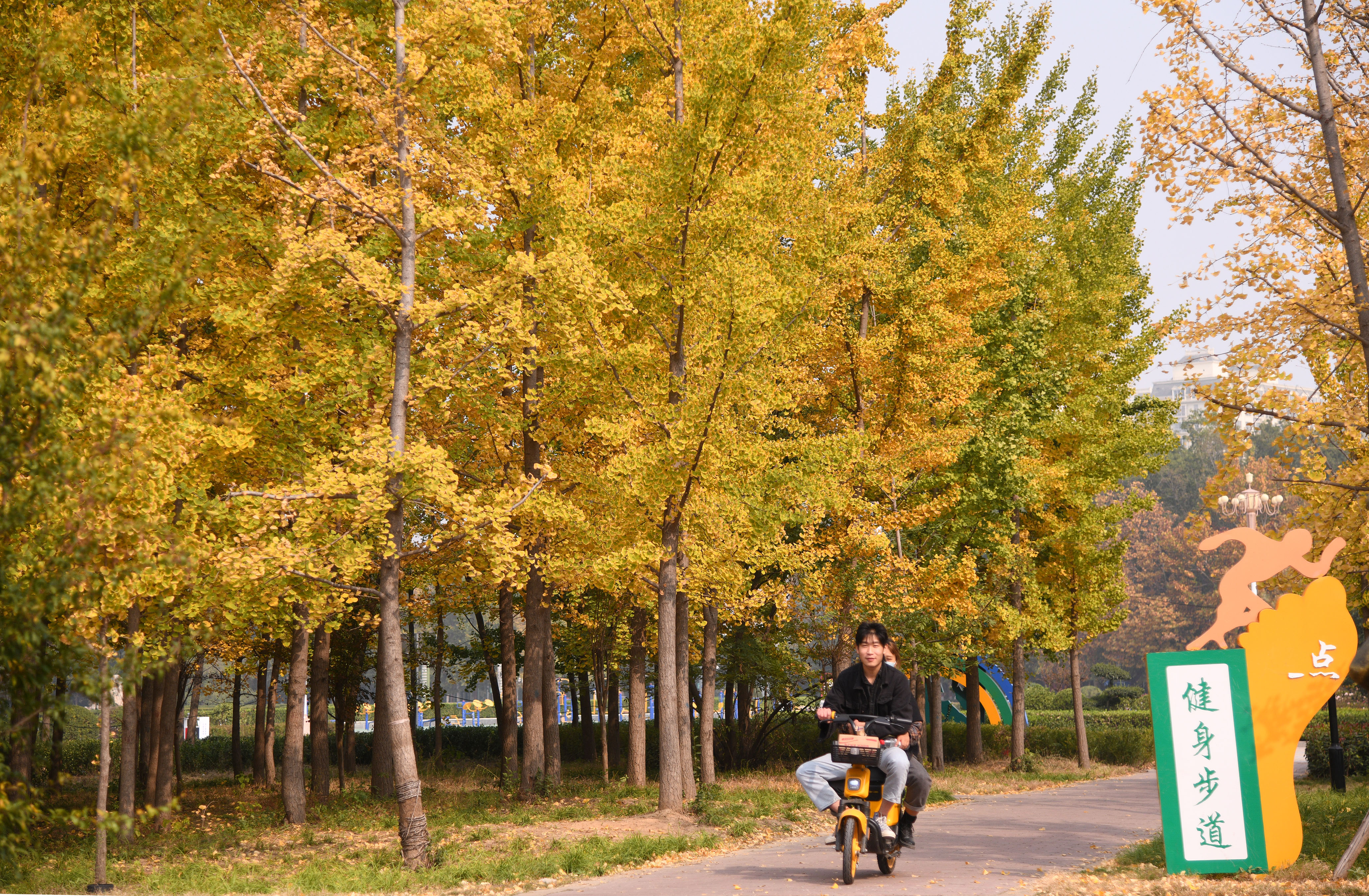 記者看到,當(dāng)年讀者林傍邊的水塘,早已建成周?chē)信艿篮吐叫降脑卵篮t色的跑道從金葉紛披的讀者林旁邊繞過(guò),這里儼然成為人們的休閑地。人們往來(lái)漫步,年輕人在銀杏樹(shù)下留戀忘返,和金色的銀杏林合影,沉醉于這一美麗的秋色。當(dāng)年植樹(shù)的孩子們已經(jīng)長(zhǎng)大成人,有的已成為國(guó)家棟梁才,散布祖國(guó)各地。他們思念的銀杏樹(shù),也和他們一樣長(zhǎng)大成材,成為周口市區(qū)一處金秋最迷人的風(fēng)景。①15