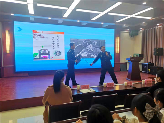 課堂上, 公安民警用鮮活的案例剖析青少年違法犯罪的心理軌跡,讓同學(xué)們做遵紀(jì)守法好學(xué)生。民警們解讀了社會(huì)主義核心價(jià)值觀基本內(nèi)涵和具體要求,教育同學(xué)們要愛黨愛國(guó)愛校園愛學(xué)習(xí),做人誠(chéng)信,做事友善。民警們還教會(huì)學(xué)生們?nèi)绾巫R(shí)別毒品,認(rèn)識(shí)毒品危害,做到拒絕、遠(yuǎn)離毒品,爭(zhēng)當(dāng)禁毒小小宣傳員。對(duì)如何防范被刀棍傷害,民警們演示了書包板凳防護(hù)法。③5