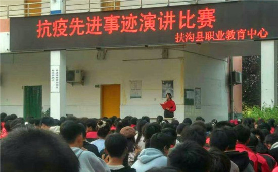 這是扶溝縣職業(yè)教育中心2020級(jí)美術(shù)班賈珍珍同學(xué)的激情演講。他的演講,感染了在場(chǎng)的1000余名師生。11月14日,為落實(shí)扶溝縣教體局《關(guān)于加強(qiáng)新時(shí)代中小學(xué)思想政治理論課教師隊(duì)伍建設(shè)工作的實(shí)施方案》中“發(fā)掘地方資源,開展先進(jìn)人物和紅色教育進(jìn)課堂活動(dòng),讓思政課成為有溫度的課”的具體要求,學(xué)校思政處組織開展了以歌頌該縣人民醫(yī)院護(hù)士劉海燕先進(jìn)事跡為主題的“抗疫先進(jìn)事跡”演講比賽。
