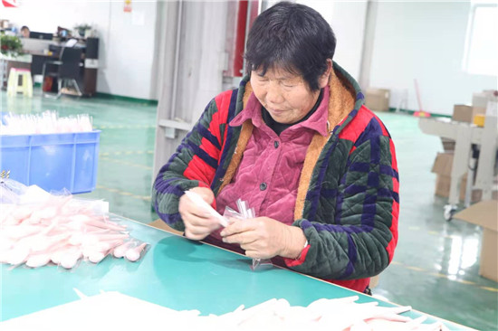 11月25日,家住鹿邑縣張店鎮(zhèn)劉莊村的孫小懶像往常一樣,吃過早餐后就到村里的河南雅彩美妝用具有限公司套管車間上班?!斑M(jìn)廠務(wù)工一人,穩(wěn)定致富一家”這句話正是孫小懶家的真實(shí)寫照。前幾年,孫小懶的丈夫因病去世后,撇下三個(gè)兒子,最大的今年讀高中,最小的還在讀小學(xué),主要?jiǎng)趧?dòng)力的缺失讓孫小懶一家人的生活陷入困境。