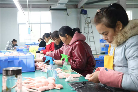 河南雅彩美妝用具有限公司負(fù)責(zé)人趙廣才介紹,公司主要從事化妝刷、美妝用具加工,十分適宜留守婦女干。車間里的工人基本都是貧困戶和住在附近的留守婦女。在家門口上班,既能掙錢,又方便照顧家人。每天中午公司還提供午餐,工人早上來上班,下午下班不耽誤回家照看孩子?!拔疑习嘁呀?jīng)10多天了,再過不久,就可以領(lǐng)工資了,真是高興!”68歲的村民張美榮告訴記者,家里孩子們都大了,自己在家閑著也沒啥事,她就到包裝車間上班,一個(gè)月算下來能掙2000多元,活也不重,既鍛煉了身體,又提高了家庭收入。