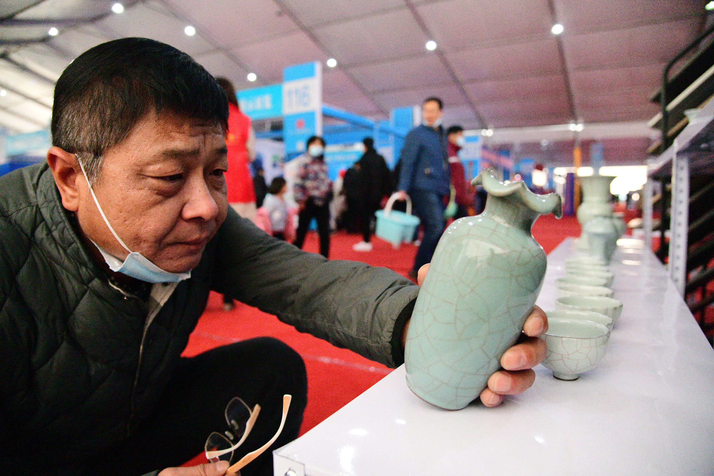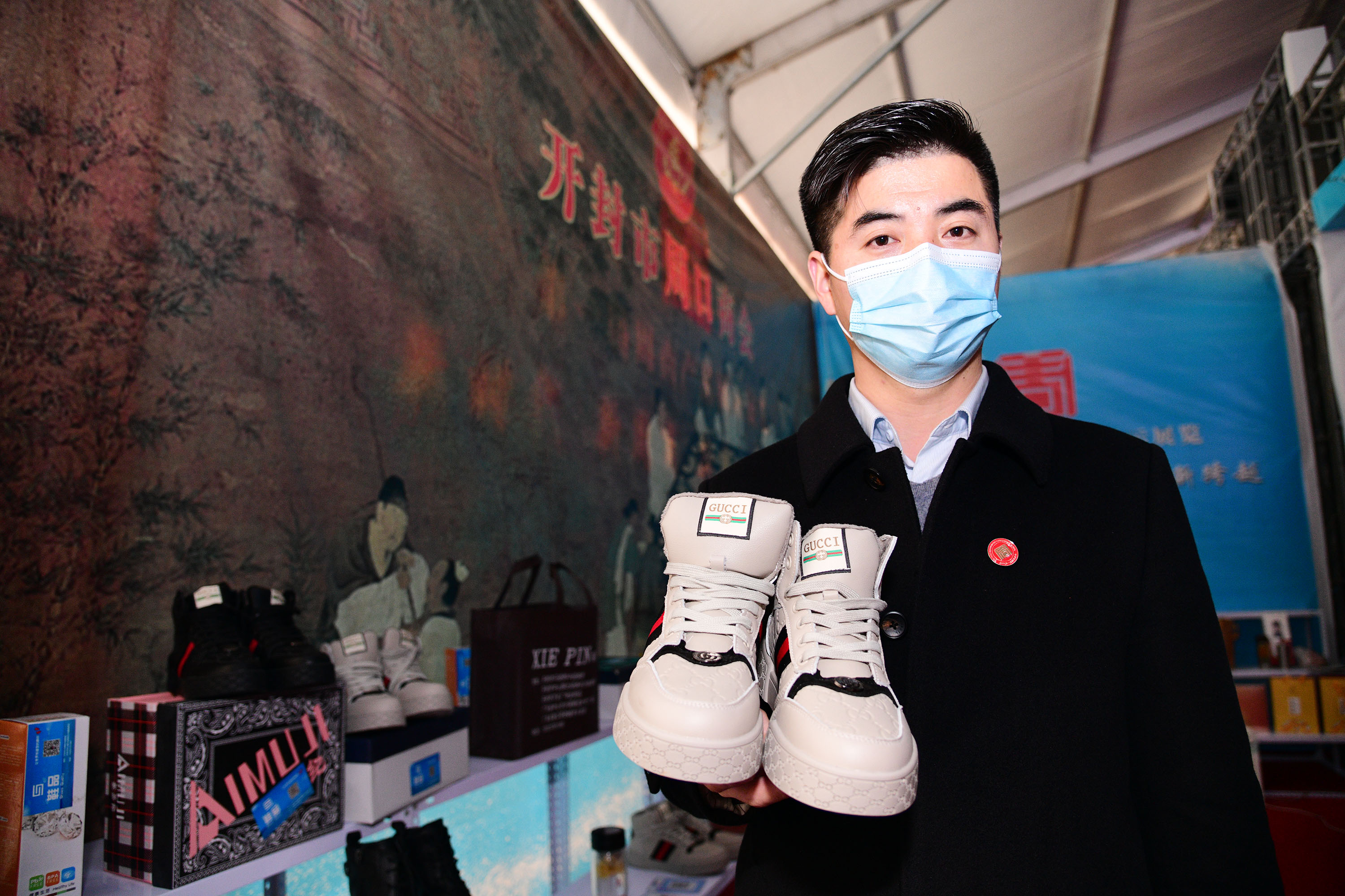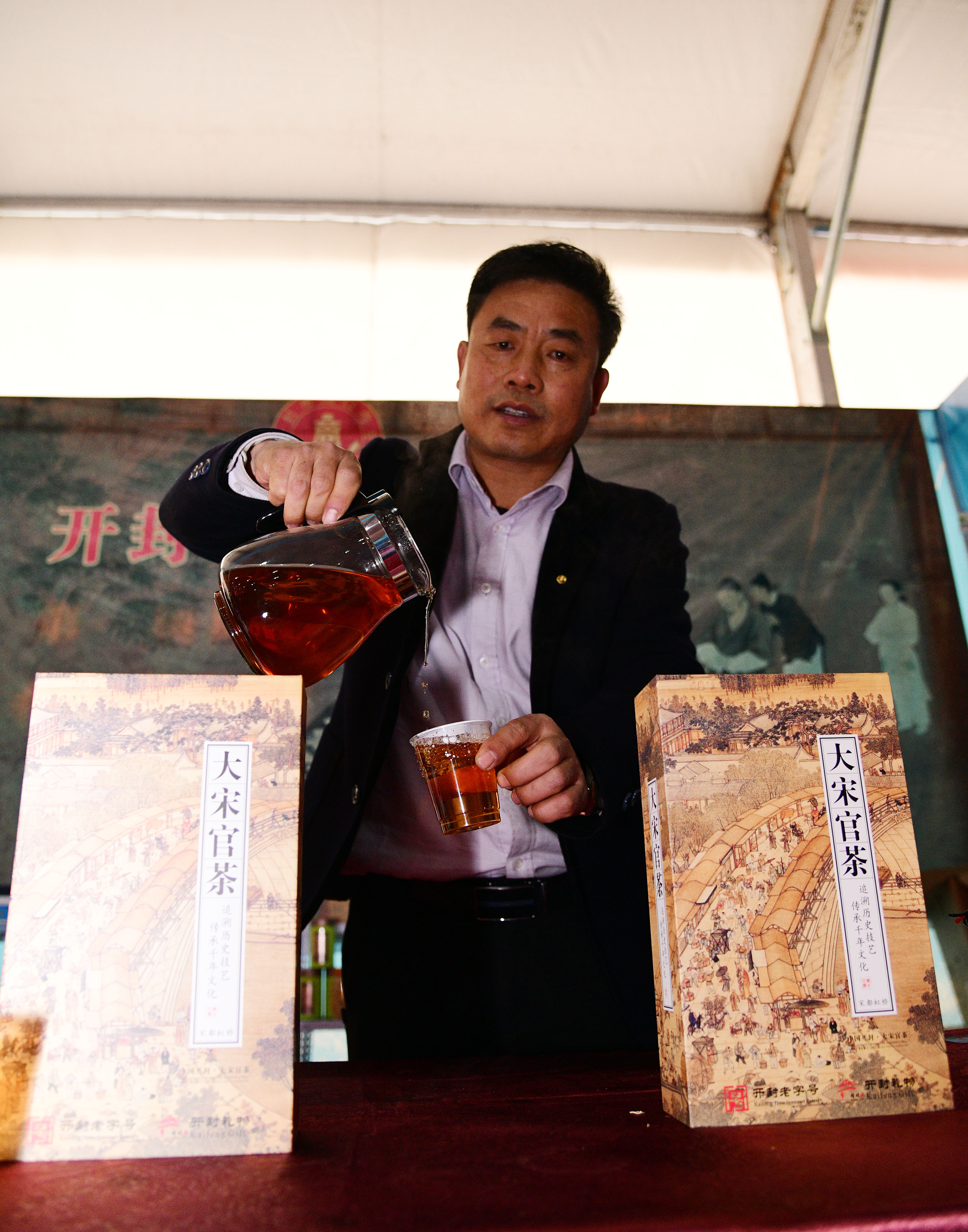 在展會上給顧客講述大宋官瓷品相的董俊,也是很厲害的周口企業(yè)家,能夠把開封老字號的官瓷,運營得風生水起,大宋官瓷瓷器和汴繡被譽為七朝古都象征性的物產(chǎn),還有大宋官茶,含有被譽為茶中黃金的“金花菌”,是“河南老字號”、“非物質(zhì)文化遺產(chǎn)”,也被選入“首屆開封禮物”。大宋官茶源于宋神宗(公元1068年),它今天的主人是淮陽區(qū)新站籍企業(yè)家牛華麗,這位淮陽籍漢子從小在開封長大,對大宋官茶獨有情種,現(xiàn)在是大宋官茶掌舵人,是大宋官茶非遺傳承人。而福興齋桶子雞老總馬勇是沈丘人,這是開封的名吃,去開封旅游,吃桶子雞和小籠包,成為游客必須品嘗的美味。馬勇參加周商大會帶回周口的桶子雞深受家鄉(xiāng)人的喜歡,一直熱賣。而“鞋品”鞋的老總侯建峰是鄲城人,他在廣州設有代加工廠,鞋子以河南為主要市場,在開封城由五個專賣店,同時也銷往全國。