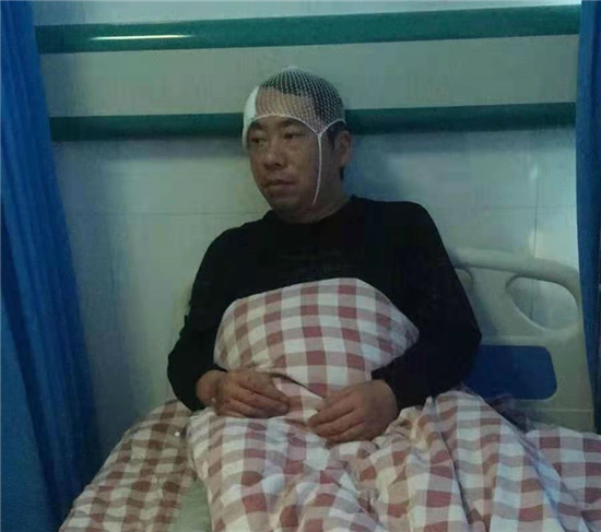 11月11日上午,在鎮(zhèn)領(lǐng)導(dǎo)的安排下,王少華前往縣醫(yī)保局為部分貧困人員及大病人員辦理慢性病本、領(lǐng)取健康扶貧相關(guān)材料。當(dāng)日,他領(lǐng)到材料已是上午10:30分,為了讓老百姓及時(shí)拿到慢性病本與扶貧材料,他馬不停蹄驅(qū)車趕回醫(yī)院。10:45分左右,他行駛到217省道與八一大道交叉口時(shí),一輛由南向北的半掛貨車直挺挺地撞到他的車身上。他頓時(shí)滿頭是血,當(dāng)場失去意識(shí)。120醫(yī)護(hù)人員趕到后,立即把他送到商水縣人民醫(yī)院急診室,完善頭顱、胸部、全腹CT等資料。之后,他接受清創(chuàng)縫合、輸液等相關(guān)處理。13:10分左右,王少華睜開眼睛,說的第一句話就是:“我要回醫(yī)院,慢性病本還在車?yán)?,我要給他們送去……”住院5天后,大腦嚴(yán)重受損的王少華還不記得車禍的經(jīng)過,一周后才能獨(dú)立行走。