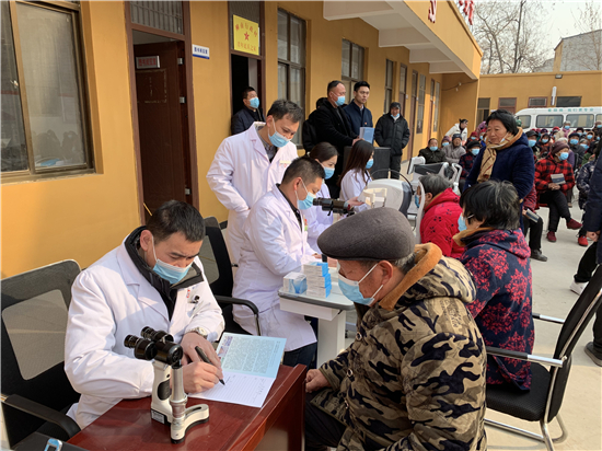 為民服務暖人心,送醫(yī)下鄉(xiāng)助健康。12月18日上午,淮陽區(qū)齊老鄉(xiāng)柳南行政村迎來一批特殊的客人。市眼科醫(yī)院醫(yī)療隊為村里的百位老年人進行體檢及眼疾檢查。同時,該村6名村醫(yī)與眼科醫(yī)院專家建立交流和跟班學習制度,以便更好為村民服務。