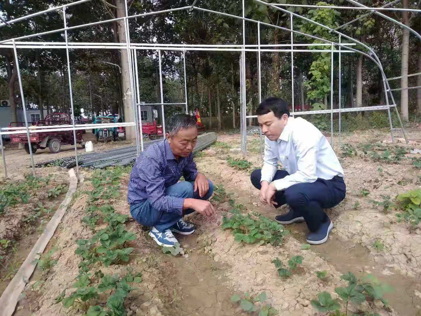 朝霞照在太康縣王集鄉(xiāng)106國(guó)道東側(cè)石山村適域種植合作社保溫大棚上,棚里溫暖如春?,F(xiàn)年58歲的李小橋行政村黨支部書記李為昌已經(jīng)開始在棚里忙碌,綠葉下的草莓顯得格外紅,他的笑洋溢著希望和成功。