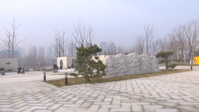 1月4日上午,記者在現(xiàn)場看到,映入眼簾的是一塊巨大的景觀石,造型如山峰,氣勢巍峨,左右兩側(cè)擺放黑松,使得整個游園風格簡潔,自然爽朗,歷史元素厚重,在功能布局上,還配建了健身小廣場、休憩廊架等,提升了游園的綜合服務(wù)功能,成為周邊市民游玩鍛煉的好去處。