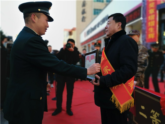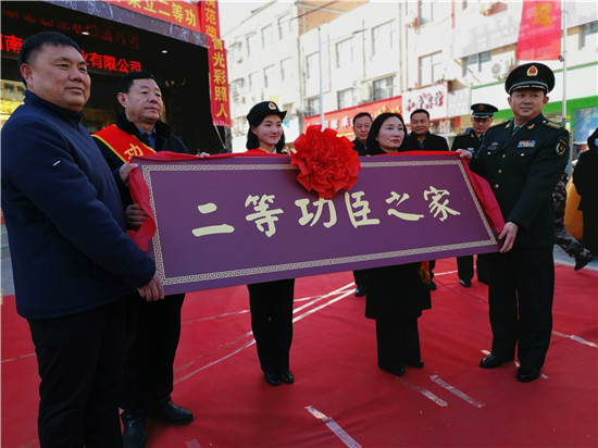 “這么冷的天沒想到軍地領(lǐng)導(dǎo)親自上門送喜報,還定制了功臣之家的光榮牌匾……”看到送喜報“隊伍”的到來,趙金豹激動地連說到。