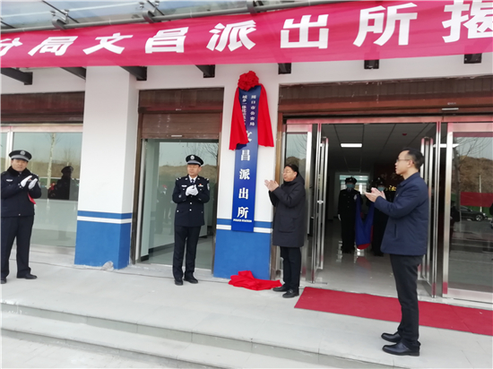當(dāng)日上午10時(shí)許,羅海龍、丁有亮共同為文昌派出所揭牌,文昌派出所全體干警、輔警面向警旗莊重宣誓。隨后,參加儀式的全體人員實(shí)地參觀了文昌派出所軟硬件設(shè)施等。丁有亮帶領(lǐng)文昌辦事處書記、主任現(xiàn)場(chǎng)了解了民警的辦公和值班情況,叮囑文昌辦事處要大力支持派出所的工作,切實(shí)為群眾解決實(shí)際問題。
