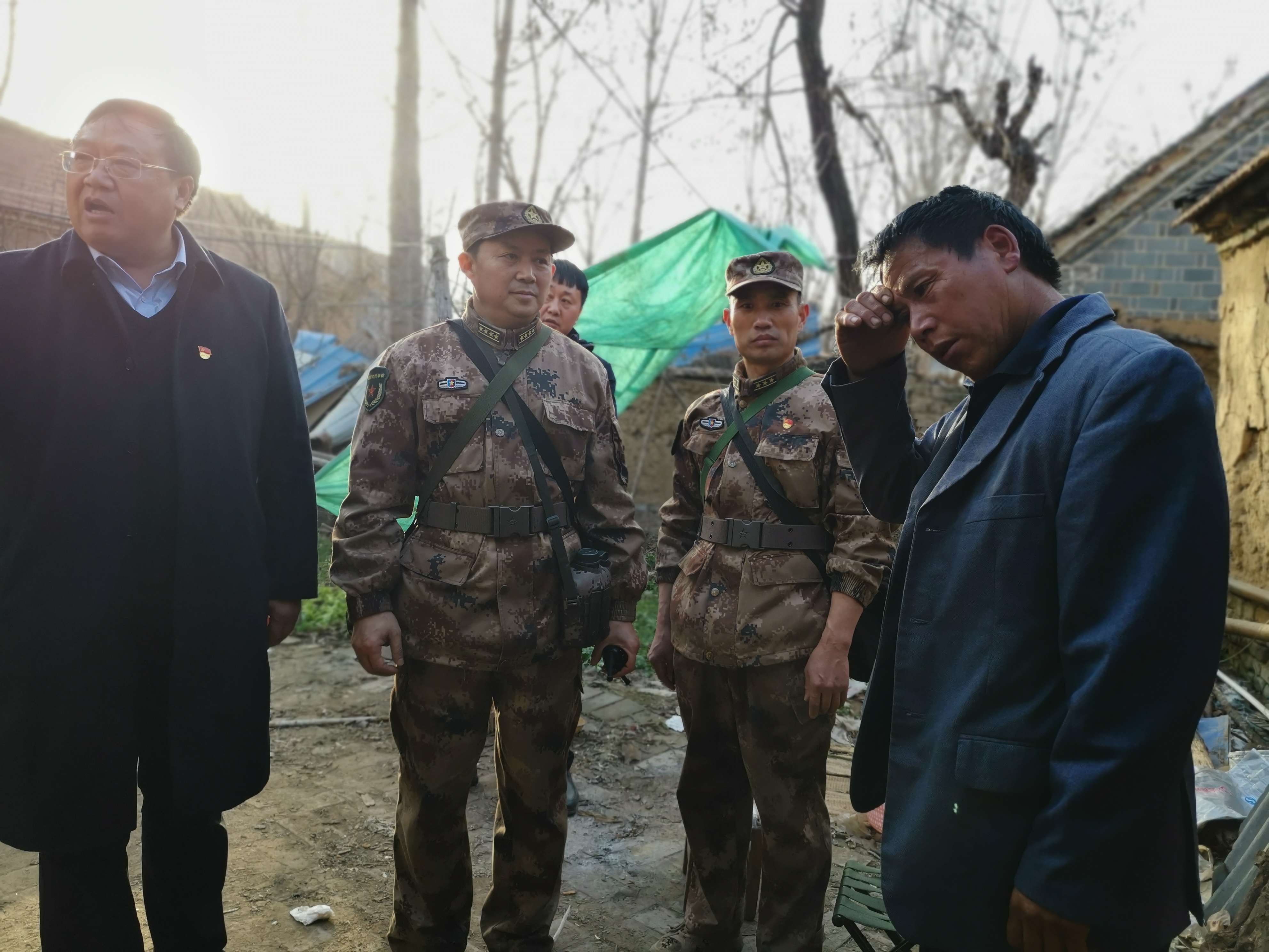 周口軍分區(qū)還將政治工作貫穿于野營拉練全過程,當(dāng)行至周口港區(qū)苑寨行政村時,薛振喜、周口軍分區(qū)政治工作處主任李揚以及川匯區(qū)人武部部長陳繼芳、政委高新傳等來到貧困戶苑立中家中慰問,為他們送去米面糧油等慰問品??粗喡姆课荩弥妨⒅歇氉砸粋€人拉扯3個孩子的艱辛生活后,薛振喜囑咐當(dāng)?shù)卣臀溲b部門要想辦法幫扶這戶貧困家庭。 苑立中激動地流下眼淚,握著薛振喜的手連聲感謝。