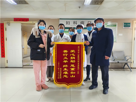 “劉醫(yī)生,謝謝您!”1月30日上午,在周口市中心醫(yī)院婦科病區(qū),做完胚胎橫紋肌肉瘤手術的小雨(化名)向醫(yī)護人員送上“愛心捐助 恩重如山 善行義舉 終身難忘”的錦旗。