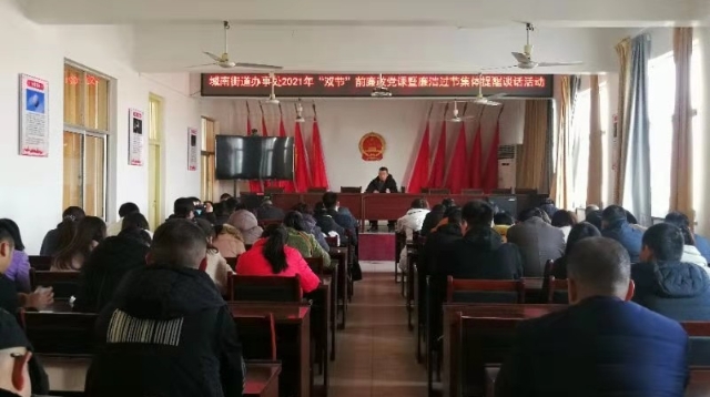 在春節(jié)、元宵節(jié)即將來臨之際,川匯區(qū)城南街道辦事處開展2021年“雙節(jié)”前廉政黨課暨廉潔過節(jié)集體談話活動,要求黨員干部增強廉潔自律意識、筑牢思想防線,確保過一個風(fēng)清氣正的“雙節(jié)”。