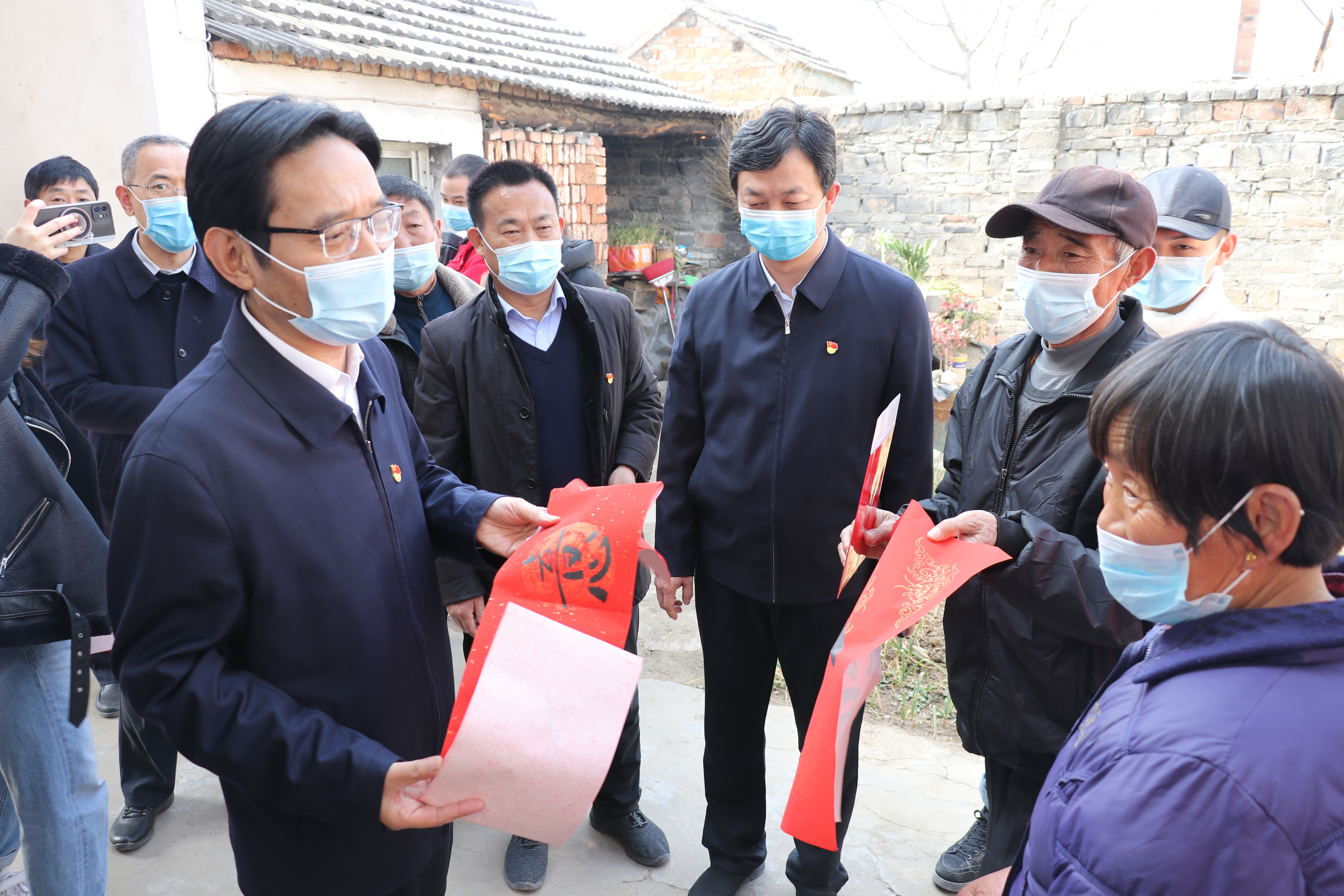 隨后,曾德亞一行來到退休老黨員李貴舉、殘疾戶李新民、脫貧戶楊群山家中,面對面交流,認真了解他們的身體健康狀況,詢問生活中的需求和困難,詳細講解疫情防控要求細則,囑咐做好個人防護工作,并向他們送上新春的祝福。③2