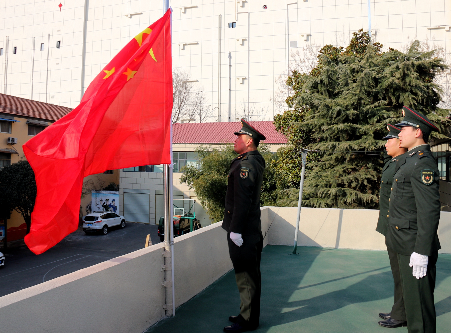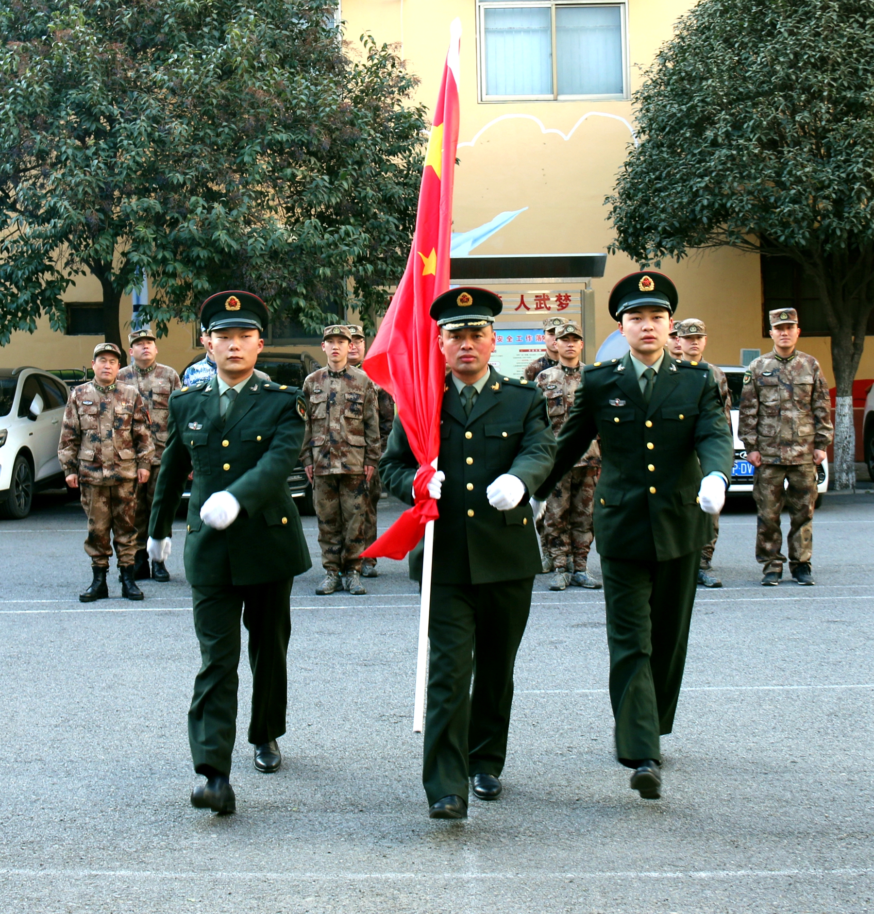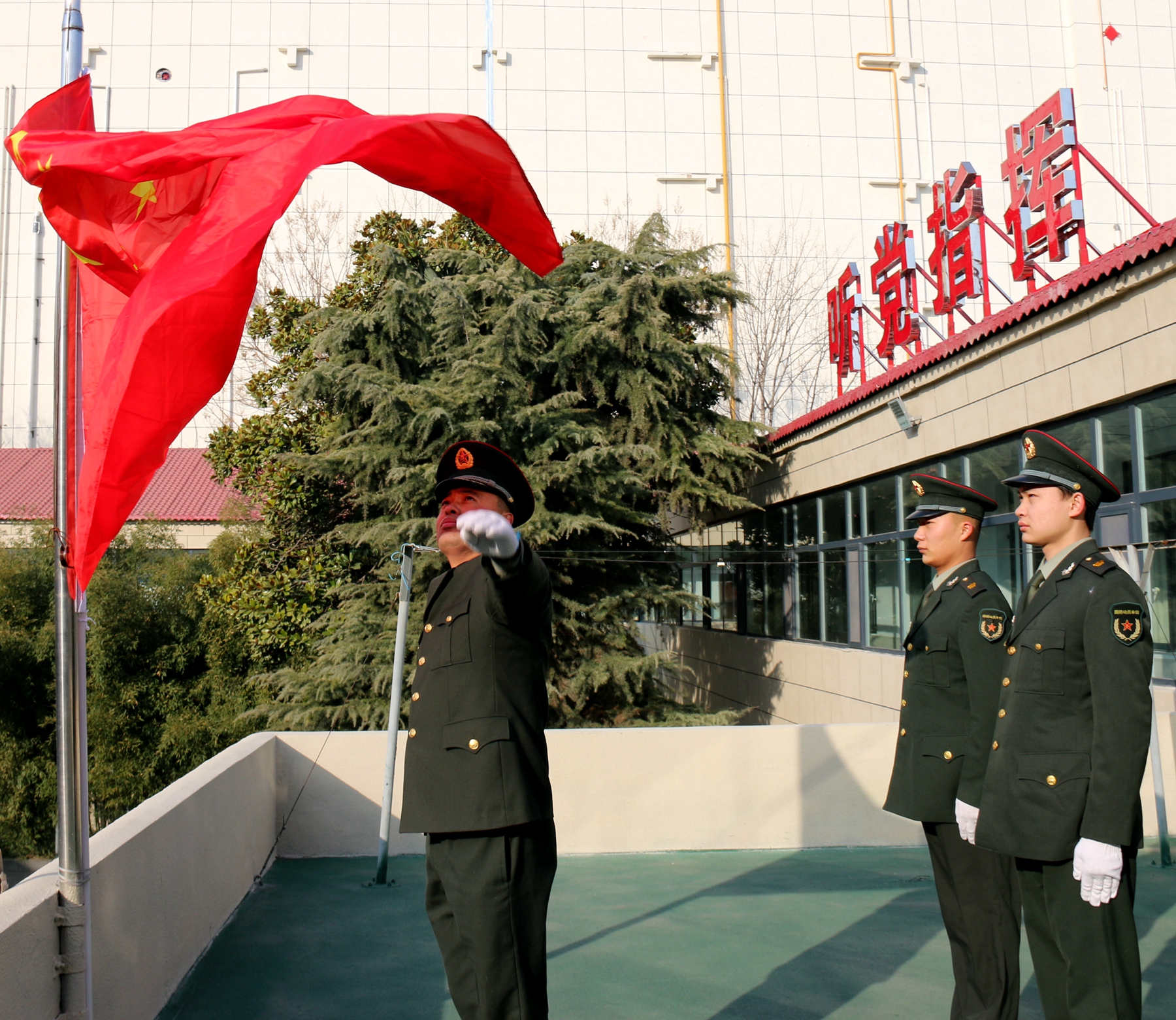 為激發(fā)官兵扎根基層、愛國奉獻和牢記強軍目標、獻身武裝工作實踐的政治熱情,該部決定在春節(jié)舉行升國旗儀式?!吧龂?,既是一次儀式教育,更是一次愛國主義教育,凝聚了官兵愛國情、報國志。激勵大家時刻牢記習主席建軍指示要求,以時不我待的精神投入到實戰(zhàn)化練兵備戰(zhàn),扛起當代國防動員的使命擔當。”該部政委李峰如此說。