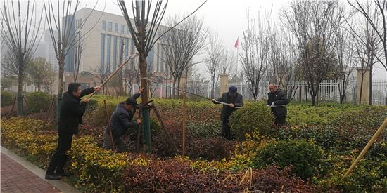 春回大地,萬物復蘇。春季是植樹的好時節(jié),2月28日,在市城鄉(xiāng)一體化示范區(qū)騰飛路與平安路交叉口附近,有工作人員正在給新栽的樹木進行養(yǎng)護和加固。②9