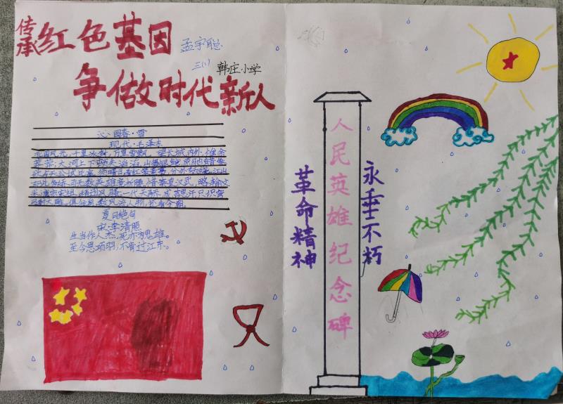 為推動(dòng)“河南省新時(shí)代文明實(shí)踐推動(dòng)周”活動(dòng)深入開展,傳承紅色基因,爭(zhēng)做新時(shí)代好少年,日前,川匯區(qū)各中小學(xué)開展了“傳承紅色基因 爭(zhēng)做時(shí)代新人”手抄報(bào)評(píng)比活動(dòng)。