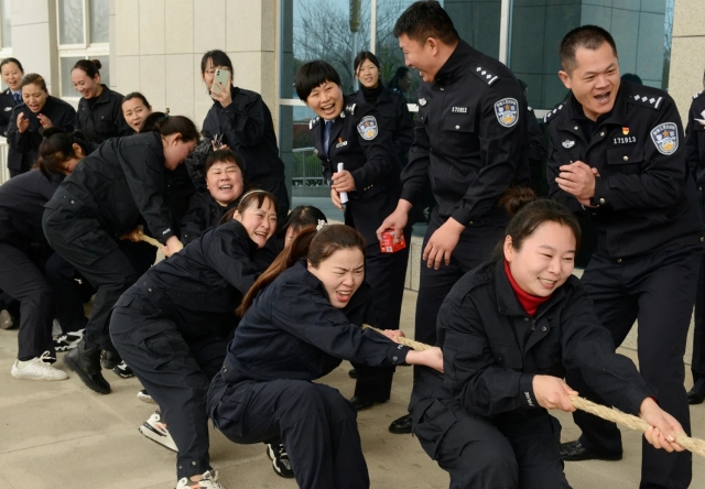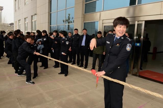 此次活動設(shè)置搶凳子、拔河比賽、蒙眼擊鼓等考驗個人體力、智力和團(tuán)隊協(xié)作的運動項目,局機(jī)關(guān)、治安、刑偵、交警四個代表隊參加了活動。上午10時,趣味活動在女警的歡聲笑語中拉開序幕。在搶凳子游戲環(huán)節(jié)中,伴隨著歡快的鼓聲響起,大家緊盯目標(biāo),奮力搶占座位,動作迅速、靈活;在蒙眼擊鼓游戲環(huán)節(jié)中,考驗著參賽選手的自身平衡,大家小心翼翼地尋找擊鼓終點,一個個呆萌的表情惹得在場觀眾開懷大笑;拔河比賽更是考驗著一個團(tuán)體的協(xié)作能力,大家擰成一股繩,拼盡全力,加油聲、吶喊聲、歡笑聲不絕于耳,此時的女警們凝聚力和戰(zhàn)斗力“爆表”,比賽氛圍愈加濃厚。參賽女民警們齊心協(xié)力,奮勇爭先,團(tuán)結(jié)拼搏,一個個看似簡單卻需要精心配合的項目把趣味運動會推向一個又一個高潮,整個比賽精彩紛呈、掌聲不斷。經(jīng)過激烈角逐,分別評選出各個項目的個人第一、二、三名,團(tuán)體第一、二、三名,局領(lǐng)導(dǎo)為獲獎集體和個人現(xiàn)場頒發(fā)了榮譽(yù)證書和獎品。