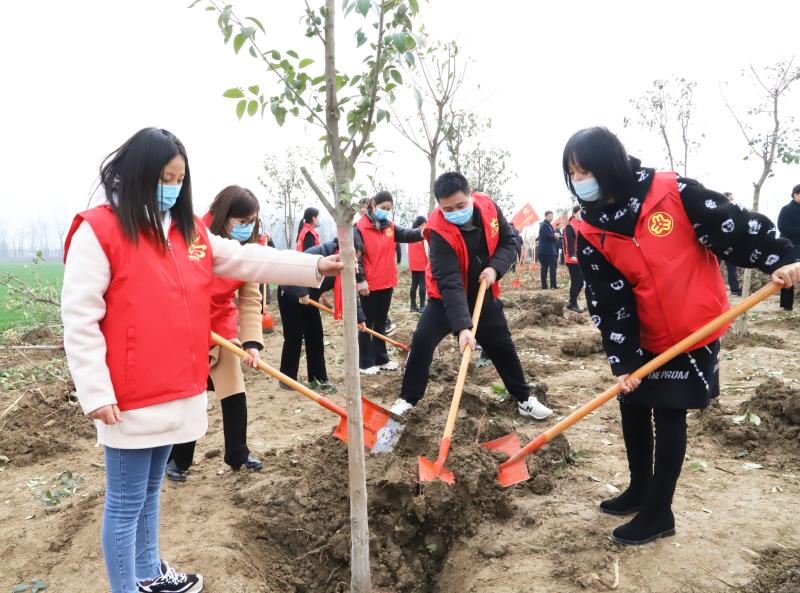 草長鶯飛,春回大地。3月12日,在第43個(gè)植樹節(jié)之際,全市掀起義務(wù)植樹熱潮,黨員干部、志愿者、市民踴躍參與義務(wù)植樹活動(dòng)。扶正樹苗、揮鍬培土、分層踩實(shí)、堆起圍堰、提水澆灌,認(rèn)真地完成著每一道工序,栽下了一棵棵樹苗,為改善生態(tài)環(huán)境、綠化美麗家園種下了一棵棵綠色的希望。圖為鄲城縣義務(wù)植樹現(xiàn)場(chǎng)。