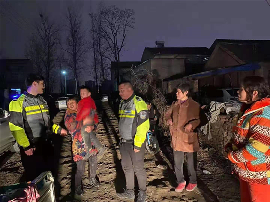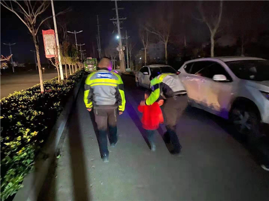 3月12日晚,鄲城縣交警大隊鐵騎中隊副中隊長張鑫值班過程中發(fā)現(xiàn)一位迷路小孩,張新等人想方設(shè)法把孩子護(hù)送回家。