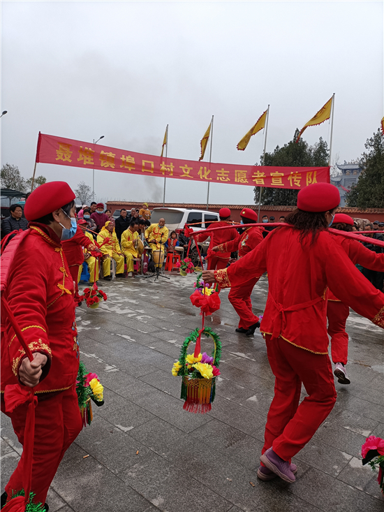 二月二,龍?zhí)ь^。3月14日,西華縣女媧城門前的廣場上,寫著“聶堆鎮(zhèn)埠口村文化志愿者宣傳隊”的紅色條幅前吸引了眾多游人。這些志愿者們用群眾喜聞樂見的舞獅、戲曲等傳統(tǒng)文藝節(jié)目,自編自演脫貧攻堅給村民們帶來的新變化,宣傳黨的富民政策,鼓勵大家參與到鄉(xiāng)村振興工作中。