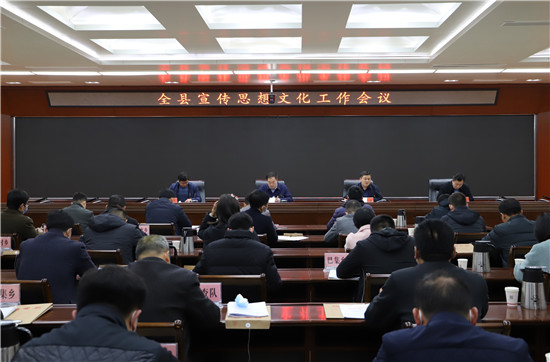吳青鋒指出,2021年全縣宣傳思想文化工作的總體要求是,堅(jiān)持以習(xí)近平新時(shí)代中國特色社會(huì)主義思想為指導(dǎo),全面貫徹十九大和十九屆二中、三中、四中、五中全會(huì)精神,深入貫徹習(xí)近平總書記關(guān)于宣傳思想工作的重要論述和視察河南重要講話精神,貫徹落實(shí)全國、全省、全市宣傳部長會(huì)議和縣委十二屆九次全會(huì)暨縣委經(jīng)濟(jì)工作會(huì)議精神,増強(qiáng)“四個(gè)意識”,堅(jiān)定“四個(gè)自信”,做到“兩個(gè)維護(hù)”,聚焦“舉旗幟、聚民心、育新人、興文化、展形象”的使命任務(wù),圍繞開局“十四五”、開啟新征程,圍繞立足新發(fā)展階段、貫徹新發(fā)展理念、構(gòu)建新發(fā)展格局,緊扣慶祝建黨百年宣傳教育這條主線,以深化實(shí)施“八大工程”為總抓手,在推動(dòng)習(xí)近平新時(shí)代中國特色社會(huì)主義思想深入人心上下功夫,在唱響愛黨愛國愛社會(huì)主義的時(shí)代主旋律上下功夫,在弘揚(yáng)時(shí)代新風(fēng)、培育時(shí)代新人上下功夫,在凝心聚力推動(dòng)全縣經(jīng)濟(jì)高質(zhì)量發(fā)展上下功夫。強(qiáng)化使命擔(dān)當(dāng)、銳意改革進(jìn)取,在新的歷史起點(diǎn)上譜寫守正創(chuàng)新、攻堅(jiān)克難的出彩篇章。