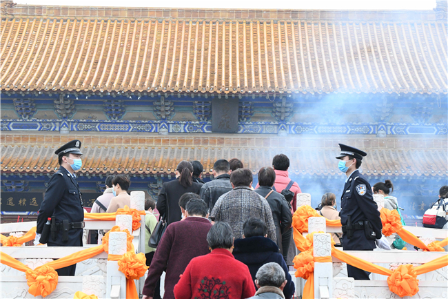 在太清宮、明道宮景區(qū)主要活動點,全力做好人流、車流疏導和受理報警求助等工作;執(zhí)勤民警還及時為走失兒童家長、行動不便的老人等提供熱情周到的服務;民輔警積極向過往香客宣傳“金鐘罩”防詐騙知識,耐心細致地手把手教群眾注冊“金鐘罩”;交警大隊根據(jù)職責任務設置了駐地警衛(wèi)組、機動應急組、事故應急組,大隊領導靠前指揮,因情施策,合理調度,全力保障活動現(xiàn)場道路交通安全暢通。③2