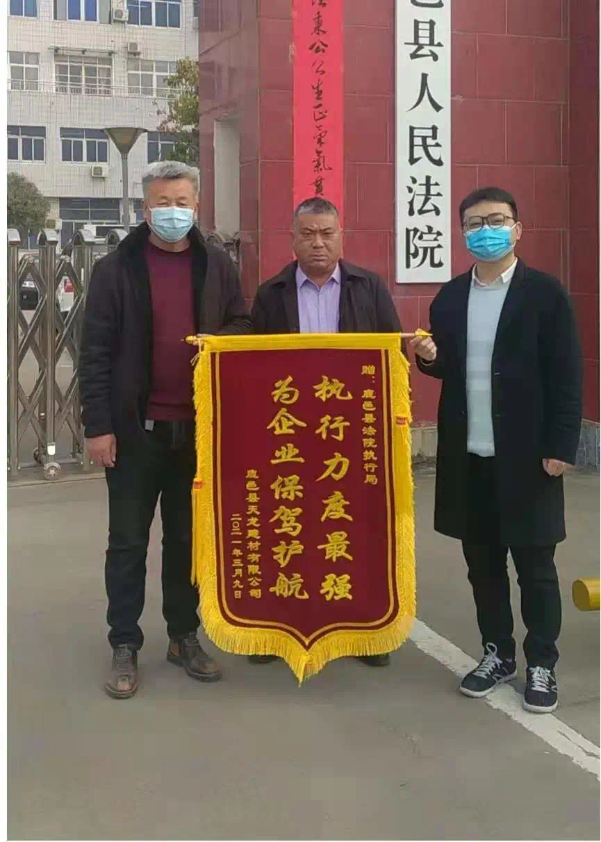 鹿邑縣某建材公司與胡某商砼買賣合同一案,雙方簽訂了價值23萬多元的商砼買賣合同,但是胡某沒有按照合同約定付款。3月2日,鹿邑縣人民法院執(zhí)行立案系統(tǒng)受理后,執(zhí)行法官當天立案、當天發(fā)起查控措施、當天凍結被執(zhí)行人財產,當天就執(zhí)結了案件,贏得了涉案企業(yè)贊譽,并為執(zhí)行法官送來了一面書有“執(zhí)行力度最強 為企業(yè)保駕護航”的錦旗表示感謝。