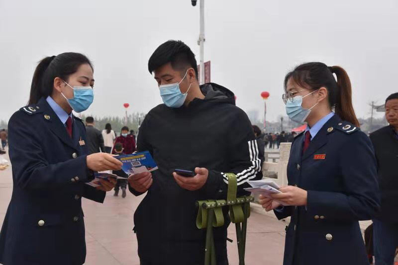 農(nóng)歷二月二至三月三,是淮陽太昊陵一年一度的大型傳統(tǒng)廟會,吸引全國各地的萬千游客前來尋根問祖。4月7日,淮陽區(qū)稅務局以“便民辦稅春風行動”為契機,組織稅法宣傳志愿者深入太昊陵廣場,開展“送稅法進廟會”宣傳活動,向逛會游客、群眾和廟會攤主發(fā)放稅法宣傳資料。