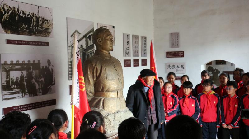 在全國上下掀起黨史學(xué)習(xí)教育熱潮之際,近日,來自吉鴻昌小學(xué)六(1)班的30名孩子,在學(xué)校少先隊輔導(dǎo)員的帶領(lǐng)下來到呂潭學(xué)校舊址,開展主題為“弘揚(yáng)鴻昌精神、傳承紅色基因”的主題隊會活動,參觀了吉鴻昌學(xué)校和吉鴻昌故居,循著英雄的足跡,親身感受吉鴻昌精神的內(nèi)涵,接受一場紅色的精神洗禮。期間,在吉鴻昌將軍塑像前,何國志老人生動地講解了吉鴻昌將軍親手?jǐn)捞弥丁?chuàng)辦吉鴻昌學(xué)校、首次向中國人介紹電視等身前事跡,在場的孩子感動得熱淚盈眶。 “聽了何爺爺?shù)闹v述,我被吉鴻昌將軍的事跡深深感動,長大后也要成為一名像他一樣的人!”張晨曦同學(xué)說。