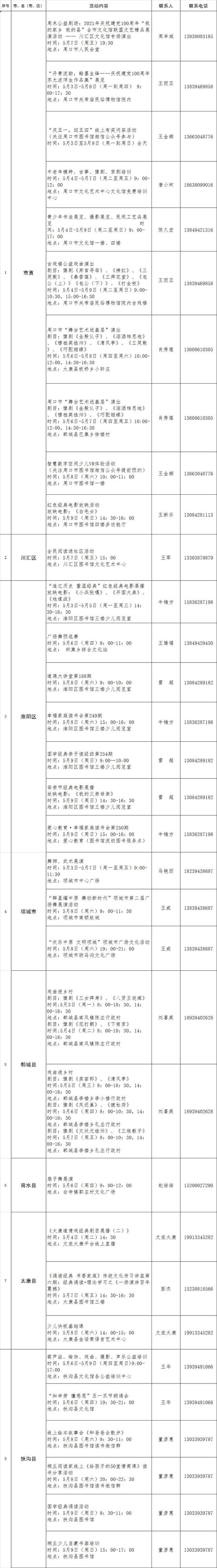 周口市文化活動(dòng)早知道一覽表(2021年5月3日-5月9日)