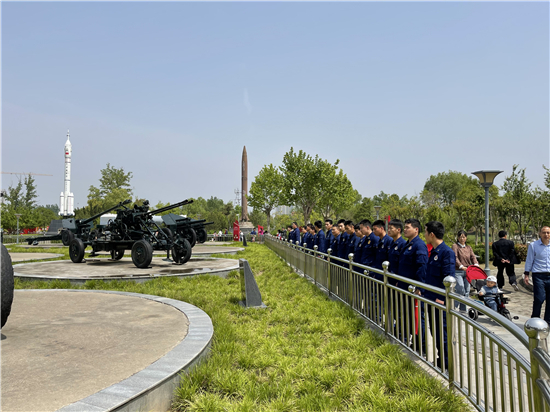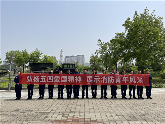 5月4日上午,天氣晴朗。在周口公園,周口市城鄉(xiāng)一體化示范區(qū)消防大隊的青年消防隊員們通過跑步訓(xùn)練等方式慶祝五四青年節(jié)。消防隊員欒慶帥告訴記者:“今天是五四青年節(jié),我們通過訓(xùn)練、參觀國防設(shè)施這樣的方式,來表達(dá)我們的愛國熱情。”②9