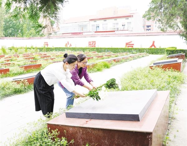 為表達(dá)對烈士的敬仰和懷念,記者和劉波濤烈士后人到鄲城烈士陵園,向劉波濤丁岐烈士合葬墓冢敬獻(xiàn)鮮花(如圖),聆聽劉波濤丁岐的傳奇故事,感受烈士濃濃的愛國情懷(相關(guān)文字報道及視頻,周口報業(yè)傳媒集團(tuán)將陸續(xù)推出)。①9