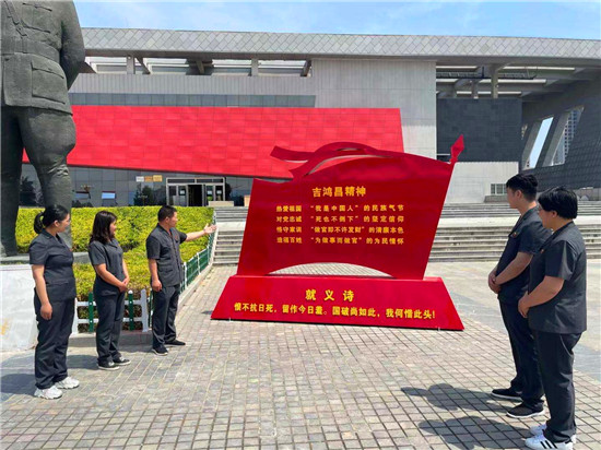 1934年11月9日,吉鴻昌將軍在天津開展地下工作時不幸被捕。在獄中,他受盡嚴刑拷打,但始終堅貞不屈。11月24日13時30分,吉鴻昌在刑場上以樹枝作筆、以大地為紙,寫下了蕩氣回腸的就義詩:“恨不抗日死,留作今日羞。國破尚如此,我何惜此頭?!庇枚虝憾滟F的生命詮釋了一名共產黨員的初心和使命。