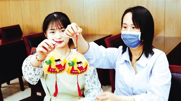 6月20日,市城鄉(xiāng)一體化示范區(qū)工作人員展示做好的香囊。當(dāng)日,市城鄉(xiāng)一體化示范區(qū)開展“聞香過端陽(yáng) 仲夏戴香囊”文明實(shí)踐主題活動(dòng),從拼龍舟、縫香囊、畫團(tuán)扇、DIY粽子等一系列活動(dòng)來沉浸式體驗(yàn)優(yōu)秀傳統(tǒng)手工藝文化。