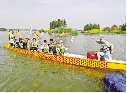 “咚咚咚……”近日,市城鄉(xiāng)一體化示范區(qū)引黃調(diào)蓄湖水面上水花翻涌,激昂的鼓點(diǎn)破空而來。2025“國(guó)緣杯”周口市第十屆中華龍舟賽的參賽隊(duì)伍正在進(jìn)行最后的沖刺訓(xùn)練。