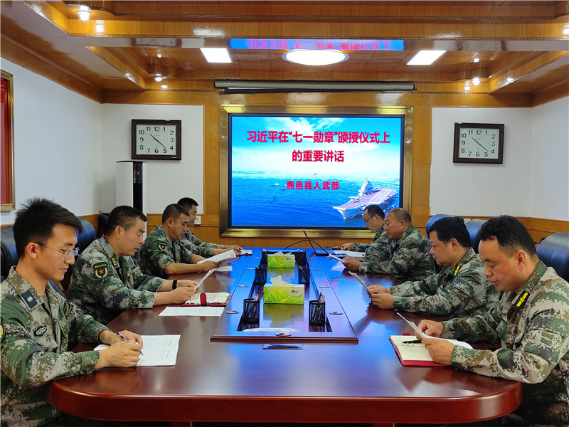 該縣人武部政委李峰首先帶領大家深入學習了《習近平在“七一勛章”頒授儀式上的重要講話》《河南省軍區(qū)黨委作出向王占山同志學習的決定》等文件精神,他指出,王占山同志為了黨,為了國家沖鋒在前,不怕犧牲,為我國革命事業(yè)立下了赫赫戰(zhàn)功,在全民黨史教育的大背景下,我們學習功勛黨員事跡,奮進國防動員事業(yè),正當其時。