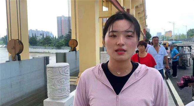 記者何晴在周口市中心城區(qū)漢陽中路周口大閘采訪