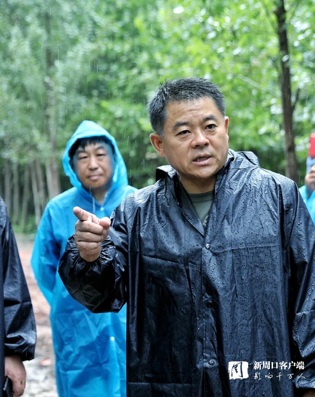 7月28日上午,扶溝縣委書記孫紅偉冒雨到賈魯河大堤險工險段實地督導(dǎo)保堤護堤工作。