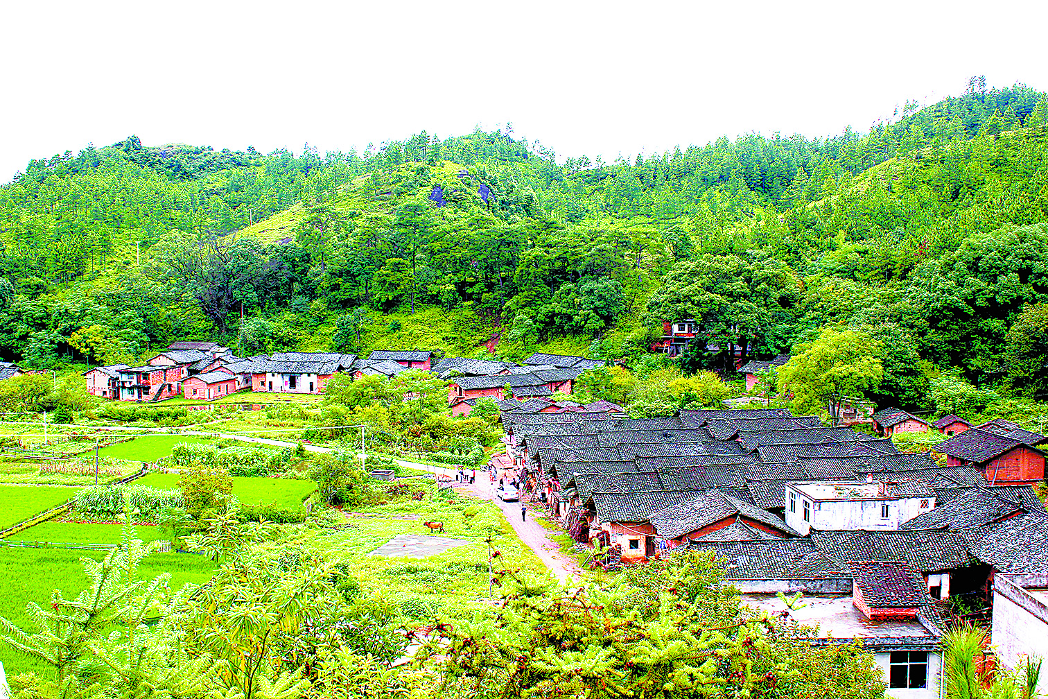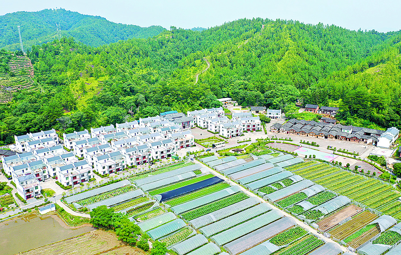 2012年6月,《國務(wù)院關(guān)于支持贛南等原中央蘇區(qū)振興發(fā)展的若干意見》出臺實施,華屋迎來了翻天覆地的變化。如今,華屋的低矮土屋早已拆了,取而代之的是66套嶄新的小康樓;村史樓前,一排排蔬菜、水果大棚鱗次櫛比,棚內(nèi)瓜果生機(jī)盎然;村莊左側(cè)特意保留的七棟土坯房整飾一新,已開發(fā)為紅色旅游景點(diǎn)。產(chǎn)業(yè)興旺,小康夢圓,華屋人過上了安居樂業(yè)、富裕幸福的火紅日子。